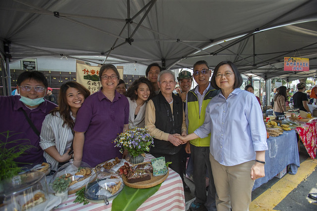 蔡英文總統今(6)日上午在總統府周邊的懷寧街及寶慶路口,參訪「一日臺灣:島嶼物產市集」,歡迎民眾前來參觀,給農友們打氣加油,也邀請大家參與晚間7時登場的總統府音樂會。