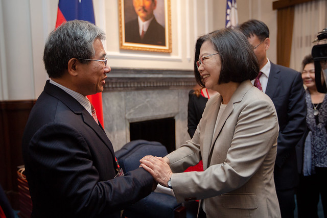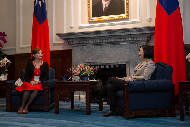 訪賓一行由行政院農委會主任委員陳吉仲陪同,前來總統府晉見總統,總統府秘書長陳菊也在座。