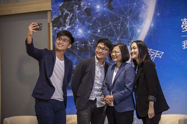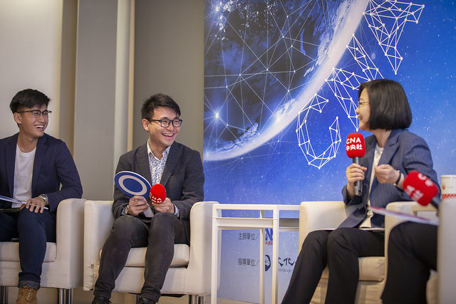 隨後,總統與第一屆3位海外實習特派員蔡芃敏、吳昇鴻、齊若堯問答互動,分享海外經驗及進行意見交流,場面熱烈溫馨。