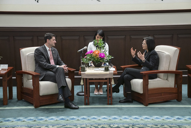 總統提到,除了總統府落成100週年,今年也是《臺灣關係法》立法40週年。最近這段時間,不論是在臺北還是華府都有很多的活動,共同見證這40年來越來越堅實的臺美關係發展。這次萊恩議長率團來訪,更是表現出美國對於落實《臺灣關係法》的重視。