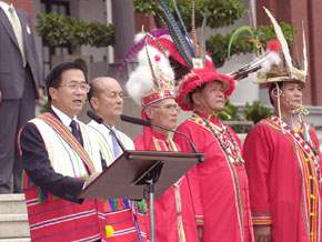 總統接受「2001花蓮原住民月文化季-原鄉、原舞、美花蓮」活動阿美族頭目及勇士報訊息