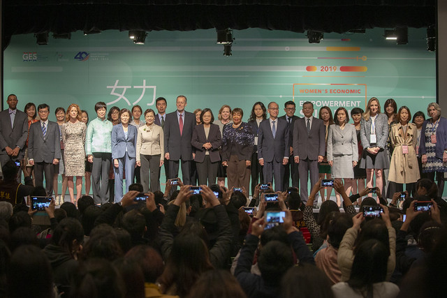 總統說,在政治領域,臺灣的女性立法委員及縣市長占了將近40%。年輕世代也嶄露頭角;去年,臺灣四位女青年獲選富比士雜誌(Forbes)「亞洲30位30歲以下最具影響力人士」 (30 Under 30 Asia),分別是企業家、藝術家、科學家及創投業者。「我們的努力也受到了肯定。」世界銀行的「2019年女性、經商與法律」報告當中,臺灣獲得91.25分,是全亞洲第一名。全世界只有六個國家,取消了所有對女性的工作限制,臺灣就是其中之一。