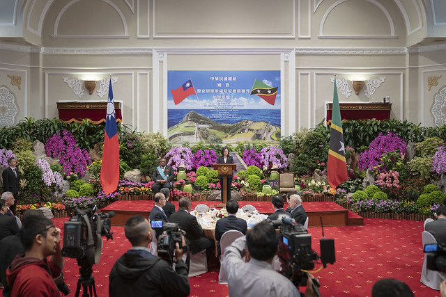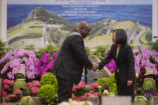 蔡英文總統今(16)日午間偕同陳建仁副總統,在總統府贈勳暨國宴宴請聖克里斯多福及尼維斯總理哈里斯(Timothy Sylvester Harris)時表示,臺灣作為克國可信賴的合作發展夥伴,我們會繼續秉持「踏實外交、互惠互助」的原則,跟克國共同攜手,促進雙方的進步和繁榮。