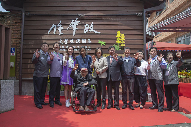 總統致詞時表示,很高興與大家一起參加「鍾肇政文學生活園區開園典禮」。鍾肇政一生奉獻臺灣文學,今天可以與鍾老先生共同見證歷史時刻,她感到相當光榮。