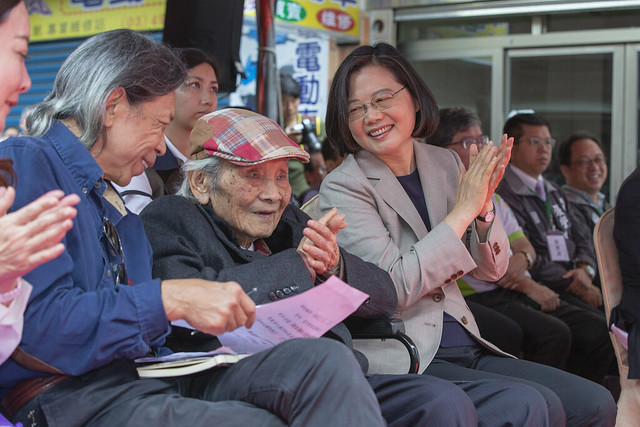 總統說,鍾老身體非常健康,完全看不出來已經95歲。看到鍾老今天戴的帽子,她想起三年前競選總統時,曾與鍾老一起參加浪漫台三線的起跑活動。那天的天氣非常熱,鍾老看到她站在大太陽底下,他脫下帽子,把帽子借給她戴。她認為,那頂帽子是鍾老對她的祝福及期待,也是鍾老對客家文化傳承的期望,她至今都沒有忘記。