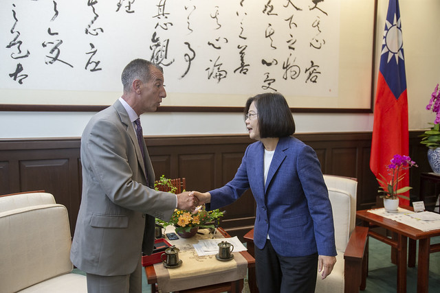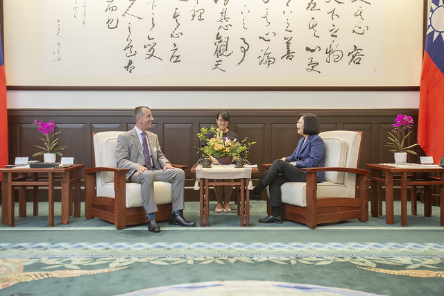 訪賓一行由國軍退除役官兵輔導委員會主任委員邱國正陪同,前來總統府晉見總統,國家安全會議秘書長李大維也在座。