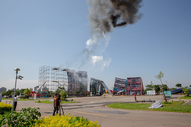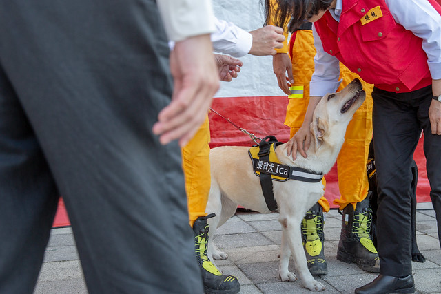 隨後,總統也與新竹市搜救犬Clay及Ica 互動。包括行政院副院長陳其邁、國防部長嚴德發及新竹市長林智堅等亦出席是場演習活動。