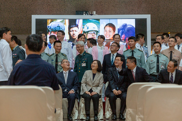 蔡英文總統今(1)日下午視察「警消海巡空勤及國軍醫療照護方案」實施情形時表示,軍、警、消、海巡、空勤的同仁,雖然身穿不同的制服,但都擔負守護家園、守護自由民主的重大使命,為國家社會做出許多貢獻。政府有責讓每一位同袍,獲得更好的醫療照護,照顧好大家的身體健康。