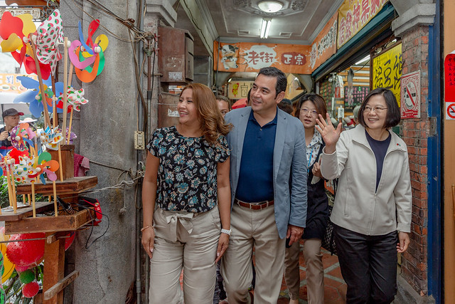 蔡英文總統今(2)日上午特別邀請瓜地馬拉共和國總統莫拉雷斯(Jimmy Morales)伉儷及訪團成員一同至桃園參訪「大溪老茶廠」暨「大溪老街」。
