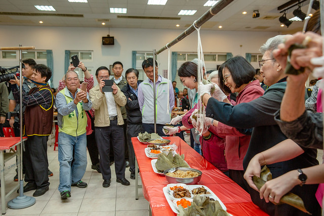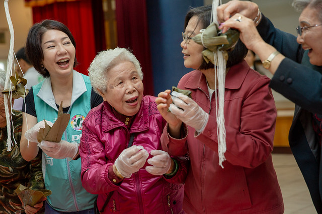 隨後,總統也與貢寮阿嬤一起包粽子、話家常,現場氣氛熱絡歡欣。