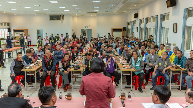 總統致詞時表示,很高興又來到貢寮包粽子。以前她在端午節時就都會來到這裡,讓阿嬤們教她包粽子。貢寮區是鮑魚最多的地方,每次她坐車經過,都看到鄉親們在養鮑魚,她覺得對地方來說,這是一項很重要的產業。而且本地產的鮑魚品質都很好,沒有用藥,也非常好吃。但有時我們也會擔心因為中國進來的鮑魚價格較低,而衝擊到本地產的鮑魚價格。