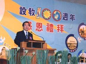 今天是台南東門教會設教一百週年、以及教會更名為「巴克禮紀念教會」的大日子,阿扁很榮幸能來參加這個歷史性的活動,也要特別向大家說聲恭禧。這是阿扁第二次來到貴會,還記得四年前、也就是一九九九年十月二十四日,阿扁來到這裡參加文化講座並發表專題演講,題目是「如何重建台灣人的心靈」,當時九二一大地震剛發生沒多久,社會受到很大的衝擊;現在我們也面臨SARS所帶來的嚴峻挑戰,阿扁希望教會的兄弟姊妹們,能發揮最大的力量,為台灣祈求身體與心靈的平安。
