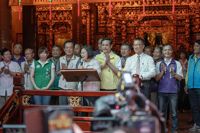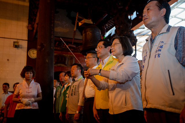 蔡英文總統今(24)日下午先後至新北市「中和福和宮」、「中和廣濟宮」及「新莊地藏庵」參拜,祈求臺灣風調雨順、國泰民安,並向新北市的鄉親說明執政團隊過去三年來,在國防、經濟發展、兩岸關係等各方面的具體施政與成果。