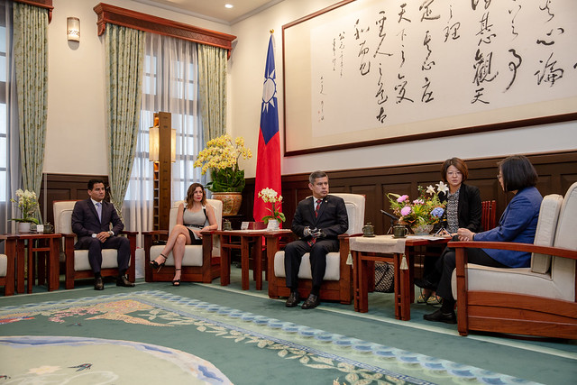 訪賓一行由外交部次長曹立傑陪同,前來總統府晉見總統,國家安全會議秘書長李大維也在座。