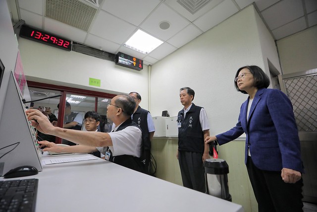 今(27)日進行「108年軍民聯合防空(萬安42號)演習」,蔡英文總統特地前往內政部警政署民防指揮管制所,視察軍警合作因應緊急狀況的能力。
