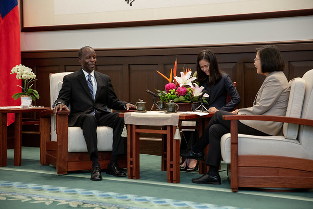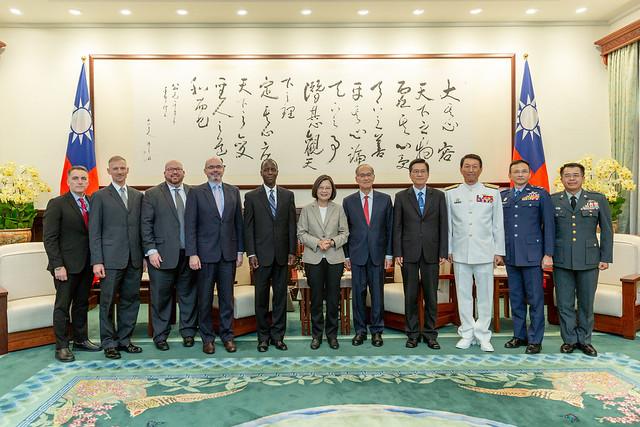 訪賓一行由國防部長嚴德發、參謀總長李喜明陪同,前來總統府晉見總統,國家安全會議秘書長李大維也在座。