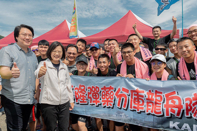 談及划龍舟的意義,總統認為,雖然船上有很多人,但每一個漿都是一致的,要把每個人的力量集中在同一個點,就能發揮出1加1大於2的能量。她相信,只有在同樣一條船上的人,大家團結,才能夠奪標制勝。她希望,未來大家都能夠繼續團結在一起,讓臺灣更好、讓基隆更好。