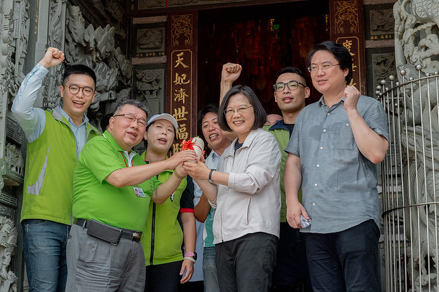 最後,總統說,我們打下好的基礎,也推動了很重要的改造工程。民間有一句諺語「起厝起一半,師傅不能換」,她請鄉親繼續支持她,給蔡英文八年的時間,她一定會讓臺灣脫胎換骨,讓臺灣在世界上更有競爭力,讓臺灣的民主變成世界的燈塔。