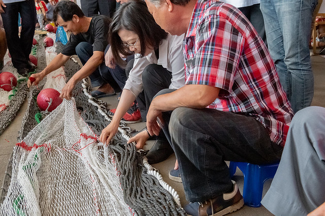 隨後,總統沿途為今年參與龍舟競賽的選手們加油打氣,並為活動鳴槍揭幕。她也與當地的漁民互動,體驗補魚網活動,接著續前往「基隆度天宮」參拜,向鄉親們說明執政團隊過去三年來,在支持基隆市政、守護臺灣主權、處理國防外交及經濟發展等各項具體施政與成果。