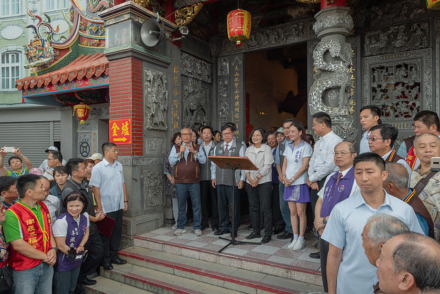 蔡英文總統今(9)日上午前往桃園參拜「蘆竹五福宮」、「景福宮」及「慈護宮」,向桃園鄉親說明執政團隊過去三年來,在國防、社會福利、拼經濟、護主權等各項具體施政與成果。
