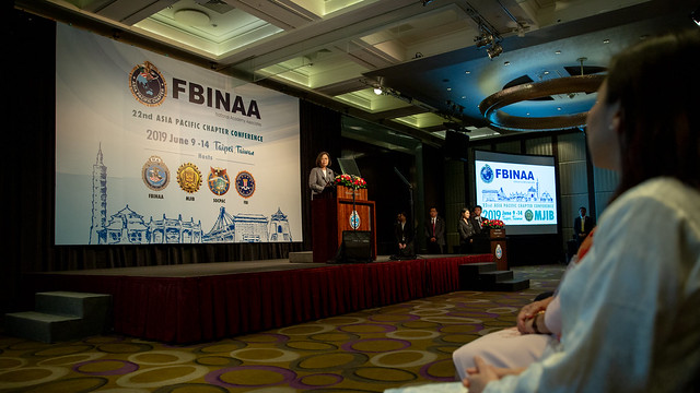 總統以英文致詞表示,歡迎大家參加「第22屆美國聯邦調查局國家學院校友會亞太區複訓研習營」,臺灣首次舉辦這項活動,她要感謝法務部調查局為籌辦研習營的努力付出;也要向法務部調查局及內政部警政署的美國聯邦調查局國家學院在場的畢業生表示敬意,他們象徵臺灣在國際執法界的重要性,也是臺灣的驕傲。
