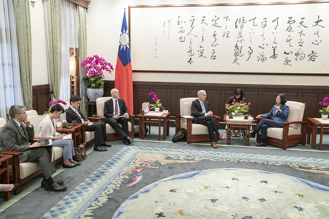 總統致詞時表示,非常歡迎「布魯金斯研究院」籌組訪問團來到臺灣,與會專家學者對臺灣都非常熟悉,常常來訪。從她上任以來,卜睿哲(Richard Bush)博士每一年都來訪問,去年松田康博教授也率團來總統府交流。