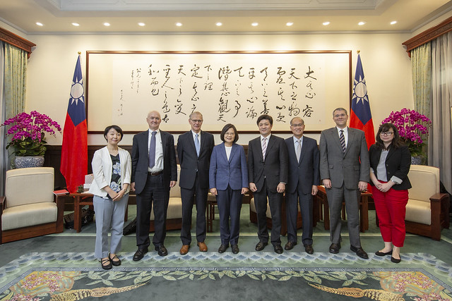 總統感謝訪團成員對臺灣議題的關心和重視,這次大家來訪,與我們政府及學術界交流,總統也期待他們多多提供建言。