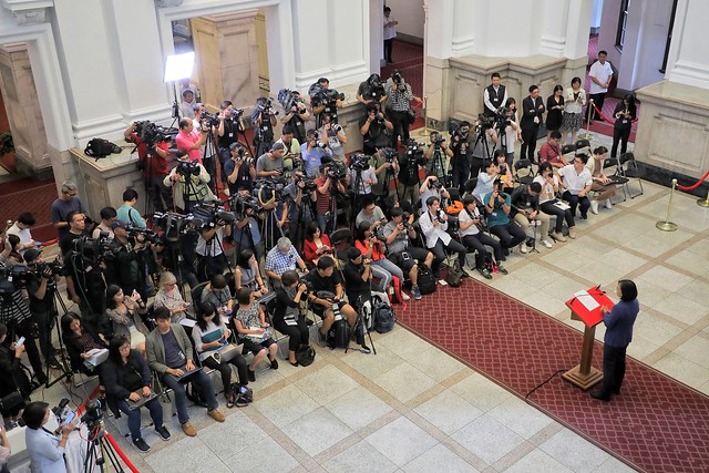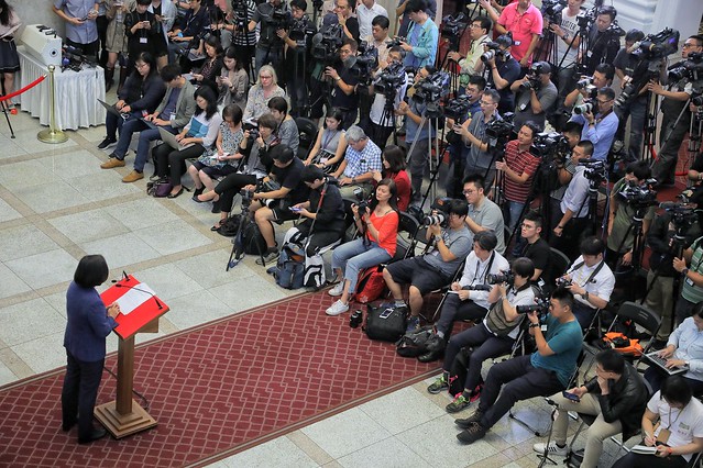 隨後,總統也接受媒體提問。針對媒體詢及是否擔心香港對峙情勢升高,總統回應表示,香港的抗爭事件確實讓全世界的人都感到不安及憂慮,尤其是在臺灣的人民,畢竟臺灣和香港的距離蠻近的,臺灣人都非常關注香港這個事件的後續發展,她相信在臺灣與國際社會的共同關注之下,香港人民會感到有很大的支持,也讓他們在尋求更多的民主及自由的這條路上,不會覺得孤單。