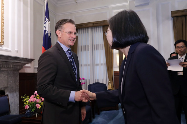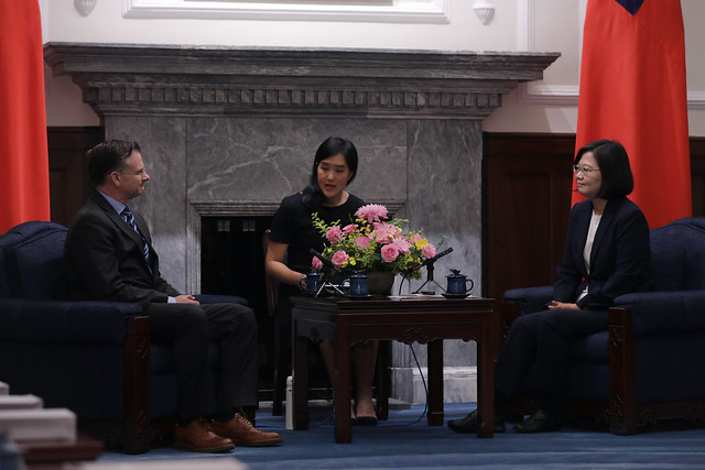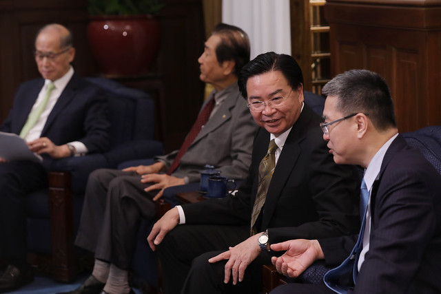 訪賓一行包括「遠景基金會」董事長陳唐山等,由外交部長吳釗燮陪同,前來總統府晉見總統,國家安全會議秘書長李大維也在座。