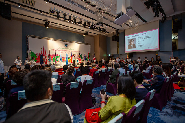總統說,臺灣以及PPSEAWA的許多會員國,都已經邁入「高齡社會」。這次年會的主題,是「Life’s Journey to Wellbeing,『銀』向幸福人生」,在議程中,與會貴賓將針對人口高齡化的挑戰,討論各國的因應做法。