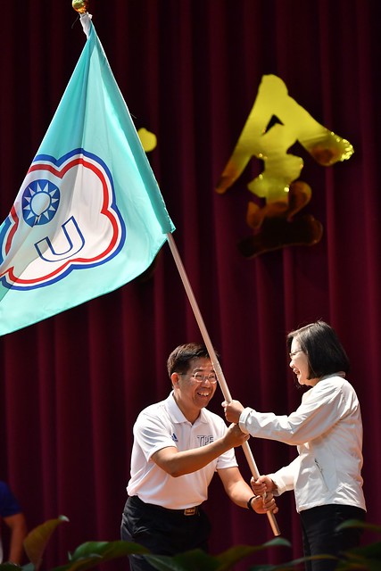 總統致詞時代表國人對全體教練、選手及支援團隊表達感謝,感謝他們對於國家榮譽的投入和付出。她說,看見選手們精神飽滿,她對大家有滿滿的信心。不論是前年的世大運,或是去年的雅加達亞運會,臺灣健兒在賽場上都拿下了非常好的成績。而那奮力拚搏的身影,也讓我們不分彼此團結在一起。