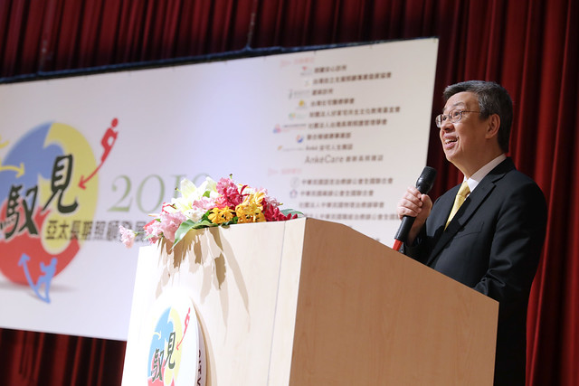 副總統致詞時表示,很榮幸受邀參加今天這樣有意義的活動,主辦單位「台灣居家服務策略聯盟」自2013年起,連續第7年辦理亞太長期照顧國際研討會,所探討的主題均與高齡社會的脈絡發展息息相關,今年更以「馭見」為主軸,並以「社區共生」及「跨領域、跨專業連結」為構面,邀請國內外專家學者及我國產、官、學各界一起分享交流,期待後續能有更多跨域單位投入,使臺灣的長期照顧能有更創新的思維。