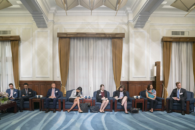 訪賓一行由外交部次長徐斯儉陪同,前來總統府晉見總統,國家安全會議秘書長李大維也在座。