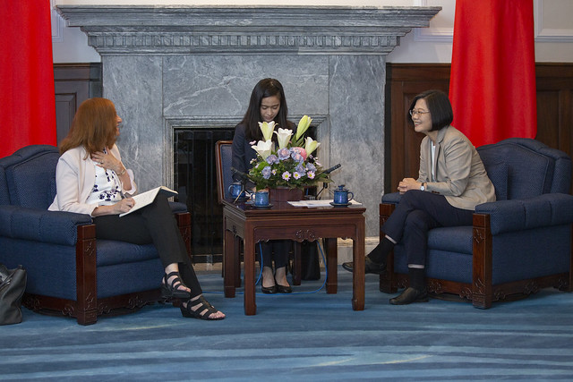 總統提到,今年是《台灣關係法》立法40週年,在今年4月的時候,CSIS、「布魯金斯研究院」(Brookings Institution)、以及「威爾遜國際學人中心」(Wilson Center)特別舉辦了視訊會議。總統特別感謝葛來儀主任邀請她一起參加會議,發表視訊演說,讓她可以說明臺灣的重大政策,以及她對臺美關係的珍視。