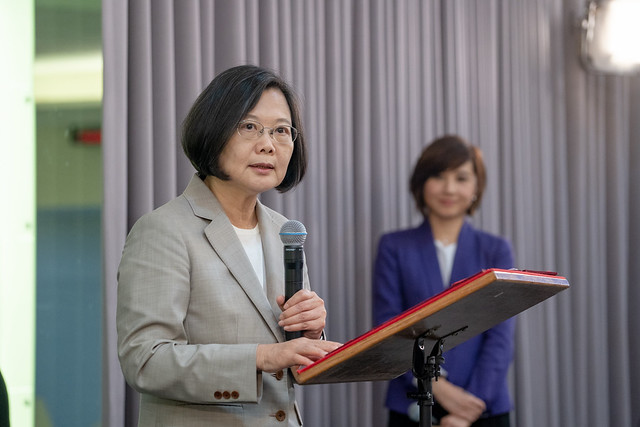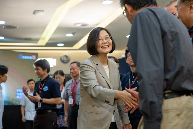 總統致詞時表示,今天是「福爾摩沙衛星七號」正式發射升空的日子,這是臺灣太空科技發展的里程碑,在這樣重要的時刻,她一定要來到國家太空中心,和大家一起親眼見證。