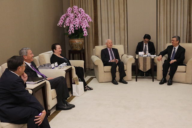 陳建仁副總統今(26)日上午接見「美國西北大學校長夏碧洛(Morton Schapiro)訪問團」時表示,臺灣已與美國15個州簽署教育合作備忘錄,為雙方學生提供更多元的學習與交流機會,期盼透過西北大學,能夠進一步推動臺美在高等教育的更多合作。