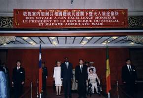 陳總統水扁伉儷今天代表中華民國政府與人民,以軍禮歡送塞內加爾總統瓦德伉儷及訪問團團員。