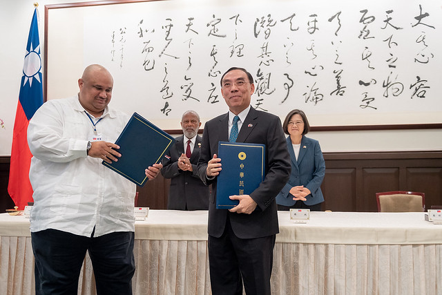 會談結束後,總統與楊可為總督共同見證我國法務部長蔡清祥與貝國檢察總長兼法務部長裴瑞斐簽署《中華民國(臺灣)政府與貝里斯政府廉政合作協定》。