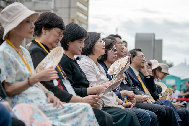 總統提到,今天我們一起在基隆,以基隆港為背景的舞台非常漂亮,有著特別的意義。基隆是臺灣頭,也有很多鄉土文學的前輩。尤其是過去有臺灣文學家周金波、作詞家葉俊麟以及現場的「人間國寶」廖瓊枝女士,所以基隆不只是臺灣頭,也是有本土意識的臺灣頭。