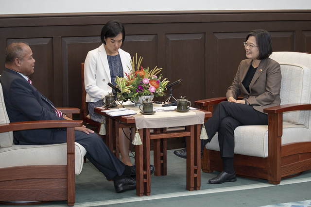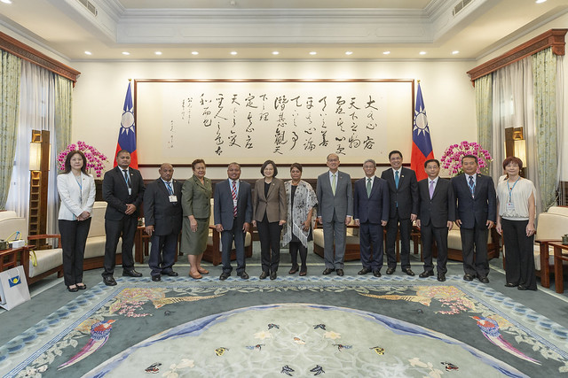 訪賓一行由外交部次長徐斯儉、帛琉共和國駐臺大使歐克麗(Dilmei L. Olkeriil)陪同,前來總統府晉見總統,國家安全會議秘書長李大維也在座。