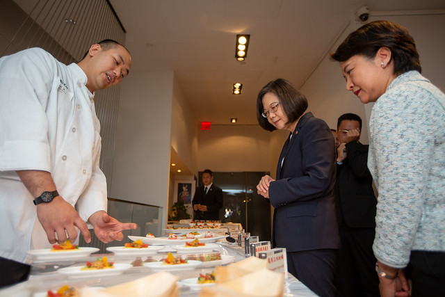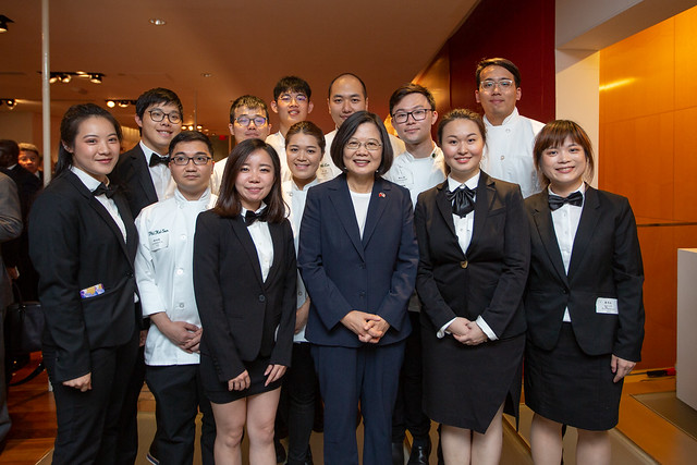 本次酒會餐點係由美國廚藝學院及紐約大學臺灣學生提供餐點與服務。酒會期間,總統也與學生們互動交流,肯定同學們遠赴紐約求學的用心及勇氣,並祝福他們學業順利。
