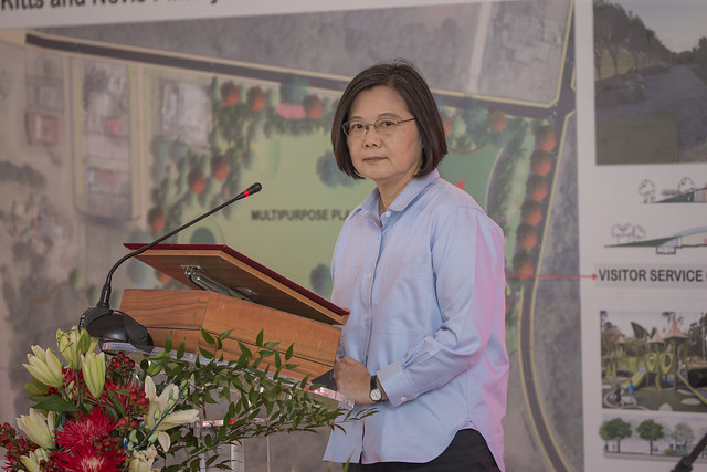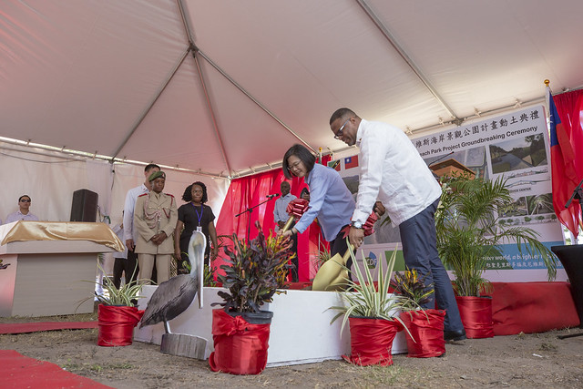 蔡英文總統「自由民主永續之旅」於當地時間14日上午(臺北時間14日晩間)搭船赴尼維斯島出席平尼斯海岸(Pinneys Beach)景觀公園動土典禮,肯定這項合作計畫的規劃兼顧環境友善、在地參與及永續設計的理念,可以說是完全符合聯合國永續發展的目標。