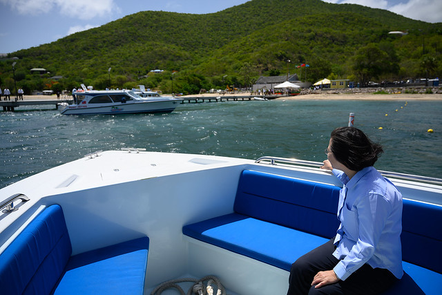 隨後,訪團一行搭乘水上計程車前往尼維斯島。總統抵達尼維斯島時,由尼維斯島副總督萊柏(Hyleeta Liburd)暨夫婿及尼維斯島行政首長兼克國外交部長布蘭特利(Mark A. G. Brantley)在Oualie Bay碼頭恭迎總統。接著,總統登車前往平尼斯海岸景觀公園預定地,出席景觀公園動土典禮。