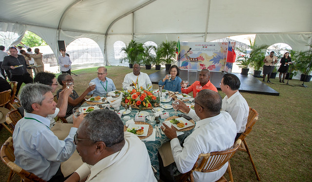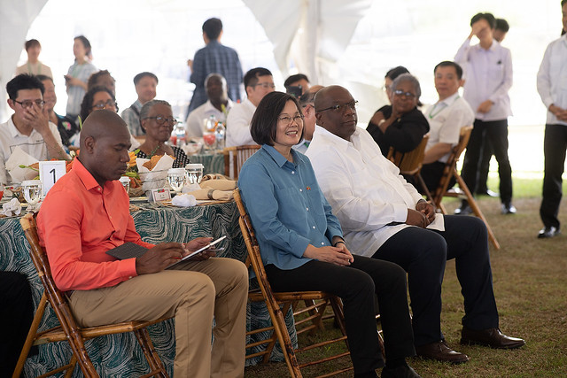 總統提及,臺灣旅居加勒比海地區的僑胞人數雖然不多,但都各自在專業領域有非常亮眼的成就,並且投入社會公益活動。例如「光駿營造公司」張溎鱗,在克國經營建築營造事業有成;旅居聖馬丁的彭瑞媛僑務顧問,也服務於加勒比海地區僑界多年。這些僑胞都經常和大使館、技術團攜手合作,正是連結兩國經貿往來最好的橋梁。