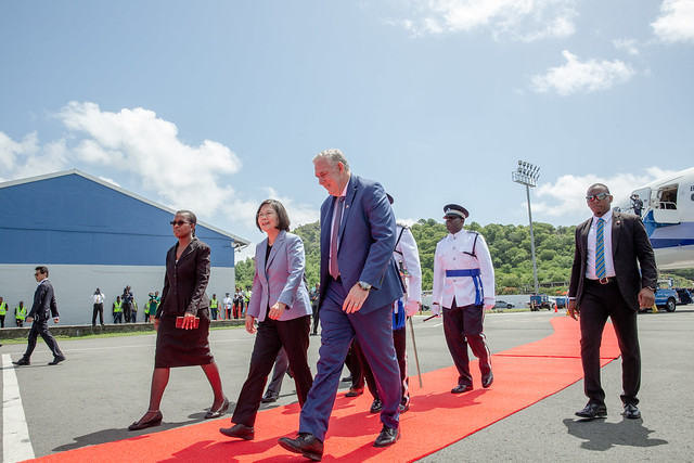 蔡英文總統「自由民主永續之旅」結束在聖文森的訪問行程,轉往聖露西亞,經約30分鐘的飛行,於當地時間17日上午(臺北時間17日晚間)抵達該國Hewanorra國際機場。