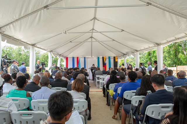 接著,總統、查士納總理及經濟發展部約瑟夫部長共同執鏟並合影,祝福醫院整建計畫順利進行。