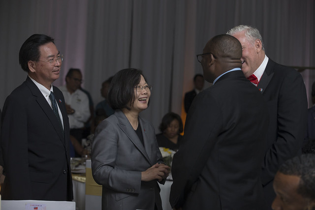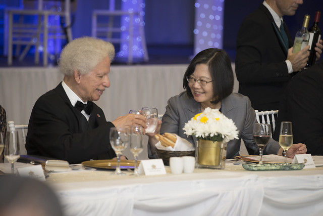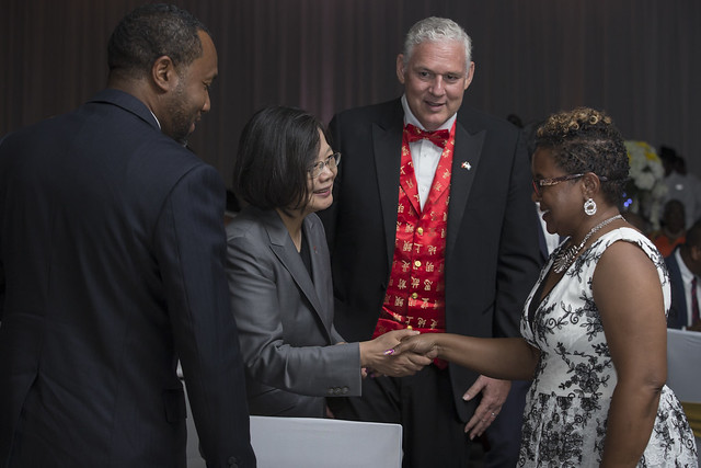 蔡英文總統「自由民主永續之旅」於當地時間17日晚間(臺北時間18日上午)出席聖露西亞總督史納克(Emmanuel Neville Cenac)國宴。
