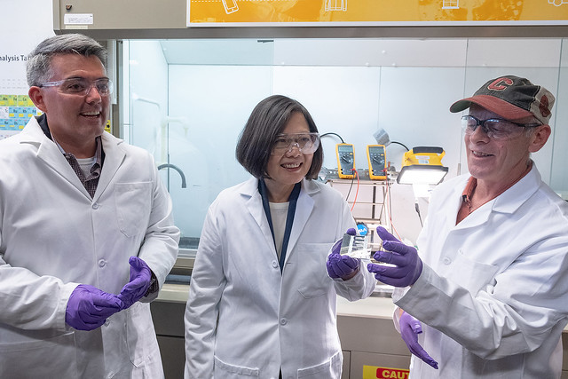 稍後,總統一行赴國家再生能源實驗室(National Renewable Energy Laboratory, NREL)參訪。NREL是由美國能源部(DOE)於1977年設資成立,前身為太陽能研究機構,於1991年老布希(George H.W. Bush)總統任內改名為NREL,研究領域擴及再生能源、節能及能源整合應用。美國前總統卡特(Jimmy Carter)、老布希及副總統拜登(Joe Biden)均曾於任內造訪。總統此次造訪,也親自瞭解臺美雙方就再生能源合作之可能性。