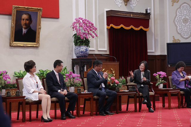 蔡英文總統今(23)日上午接見「世界臺灣商會聯合總會第25屆回國訪問暨投資考察團」,感謝世總在世界各地用民間力量來加強穩固臺灣的經貿外交,希望未來跟政府一起拚,一起為臺灣企業發掘更多商機,共同創造更好的未來。