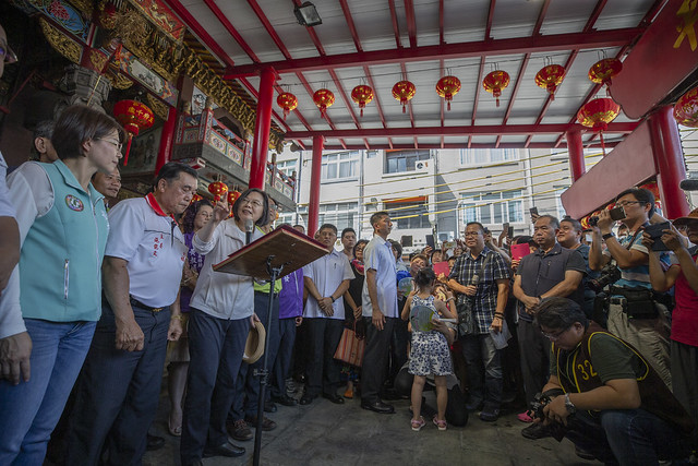 總統首先前往「福成宮」及「東興宮」參拜,祈求臺灣風調雨順、國泰民安。總統致詞時表示,她擔任總統這三年多以來,臺灣經濟持續穩定成長,儘管在美中貿易戰的衝擊之下,我們的經濟還是穩定成長;此外,政府的稅收增加,全民減稅,讓人民共享國家經濟發展的成果,顯見我們是一個好的政府。